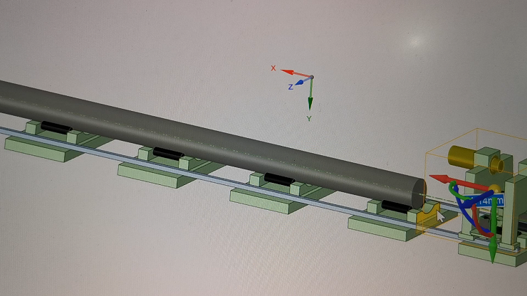 ■ 單晶硅芯長(zhǎng)棒沿滾動(dòng)支撐結(jié)構(gòu)鋪設(shè)。